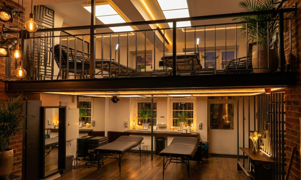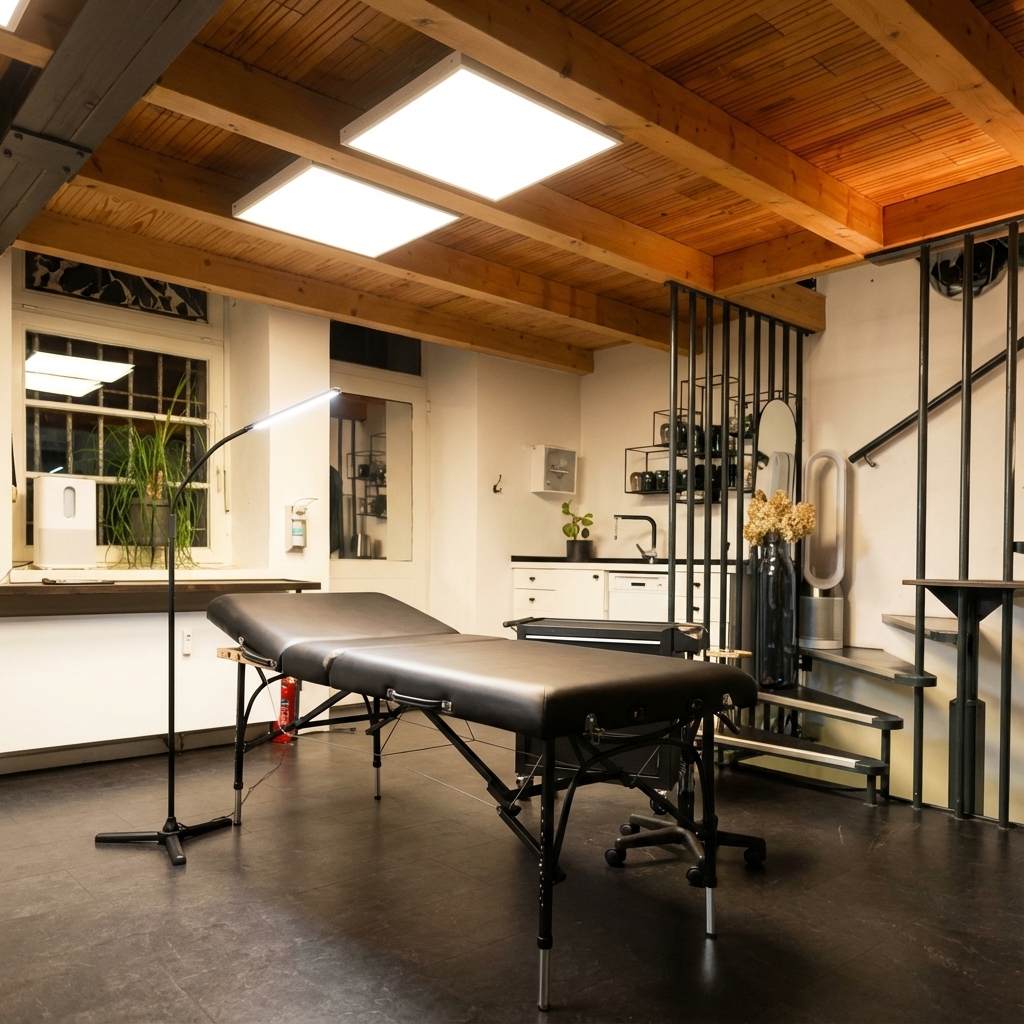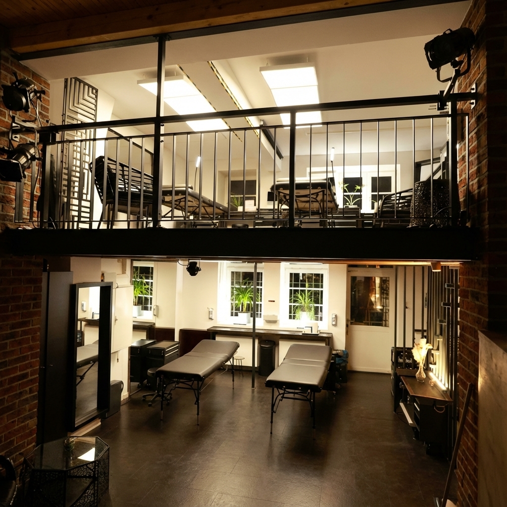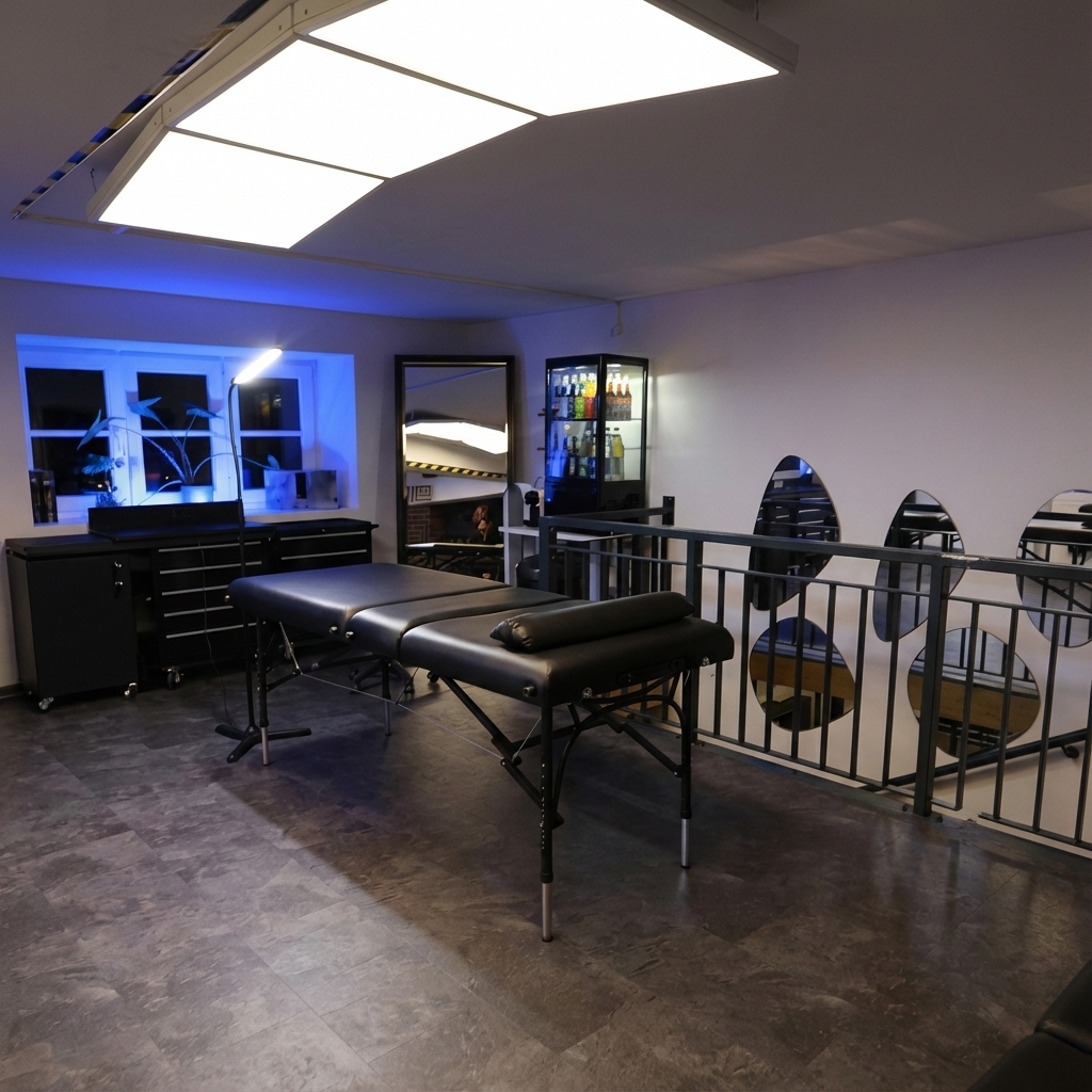 Das Studio liegt in einem offenen Kreativloft mit vorbereiteten Arbeitsplätzen statt Walk-in-Chaos. Während deines Termins läuft kein Parallelprogramm, der Fokus liegt auf deinem Tattoo.